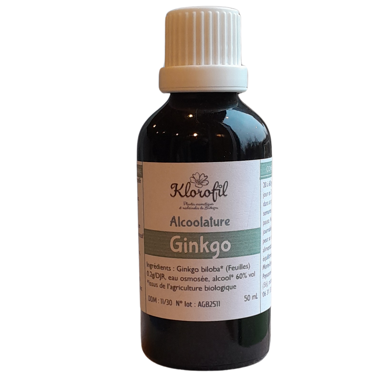 Alcoolature, teinture-mère, macération hydro-alcoolique, GinkgoAlcoolature, teinture-mère, macération hydro-alcoolique, GinkgoAlcoolature de ginkgo biloba